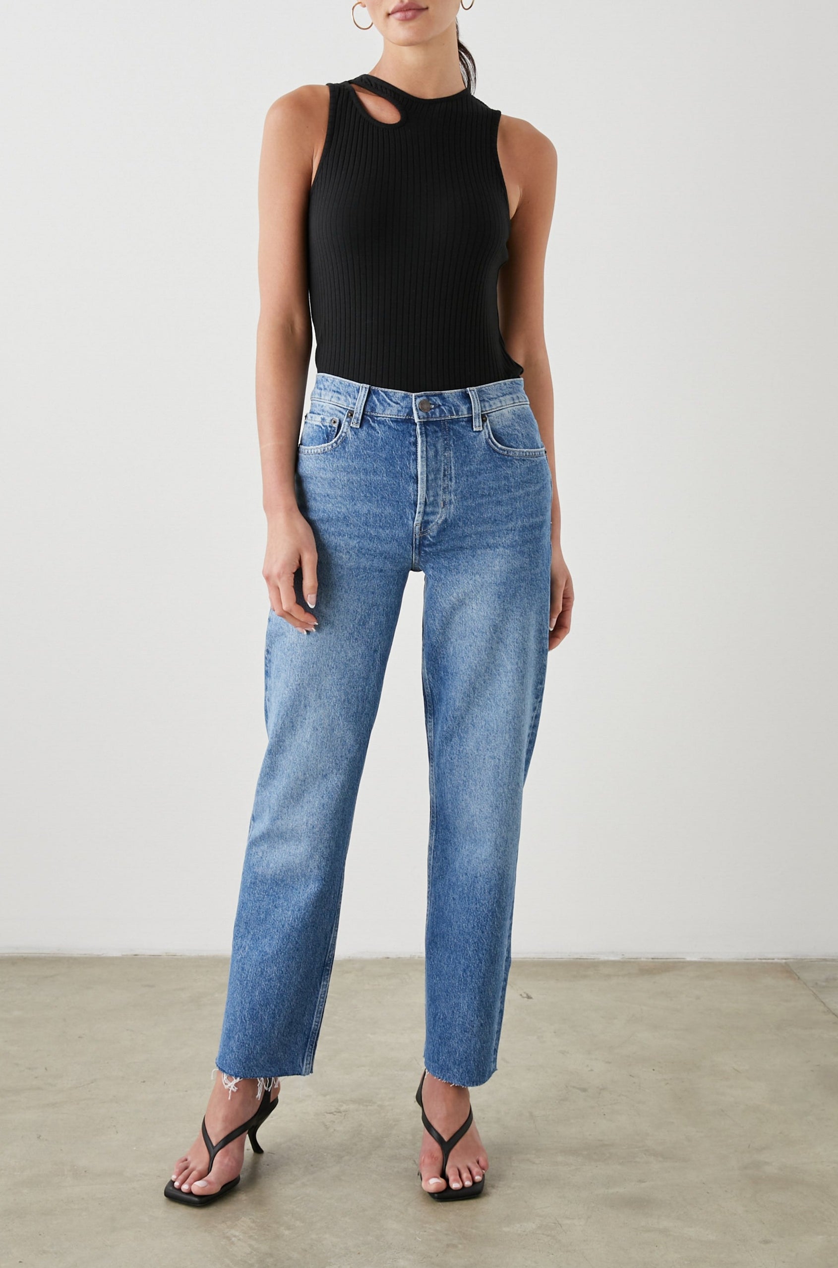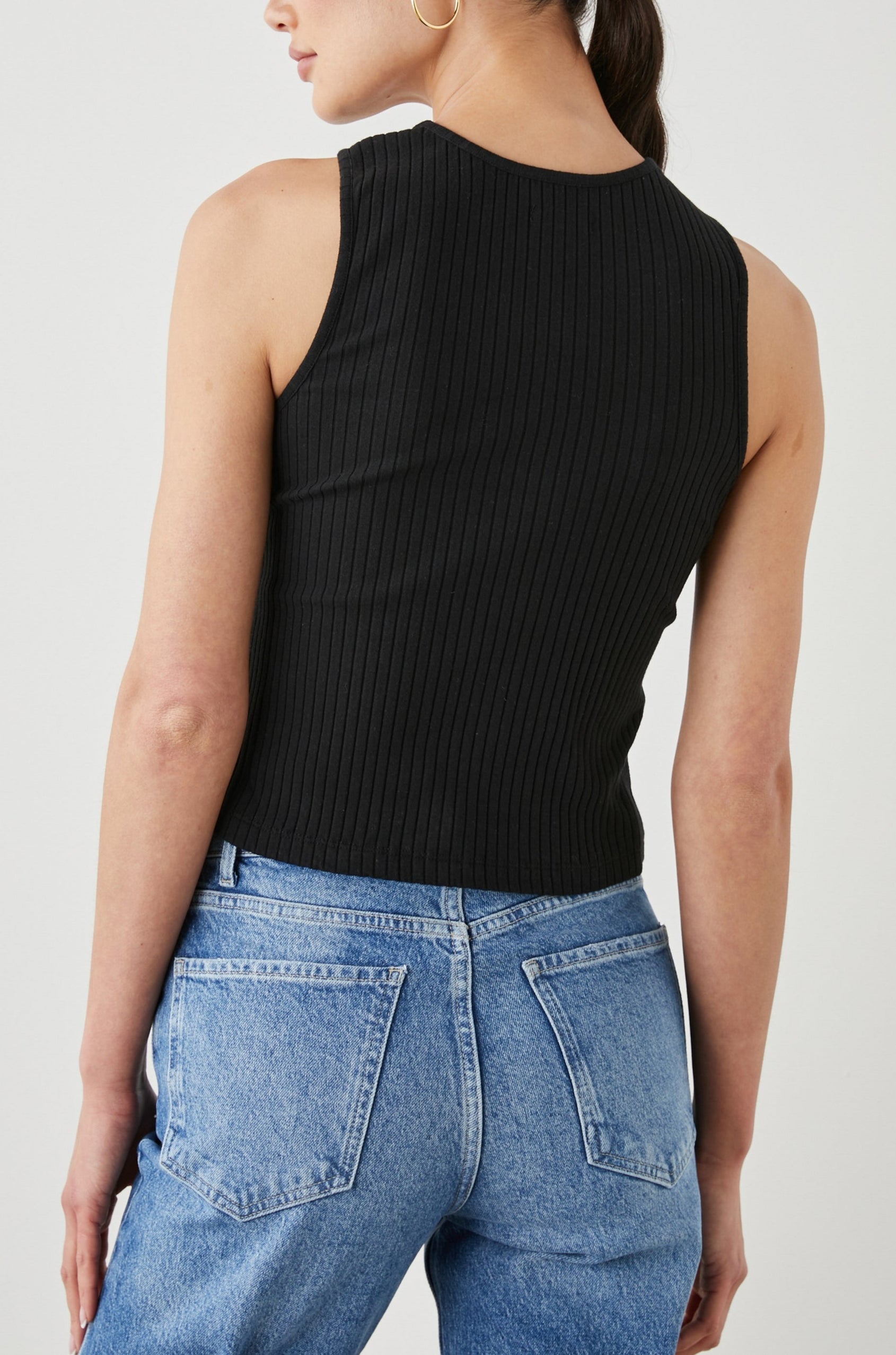 Le débardeur intemporel avec une touche d'originalité. Fabriqué en maille côtelée extensible, ce modèle a toutes les qualités de votre débardeur préféré avec un dos nu et une découpe ludique sur l'épaule supérieure droite.