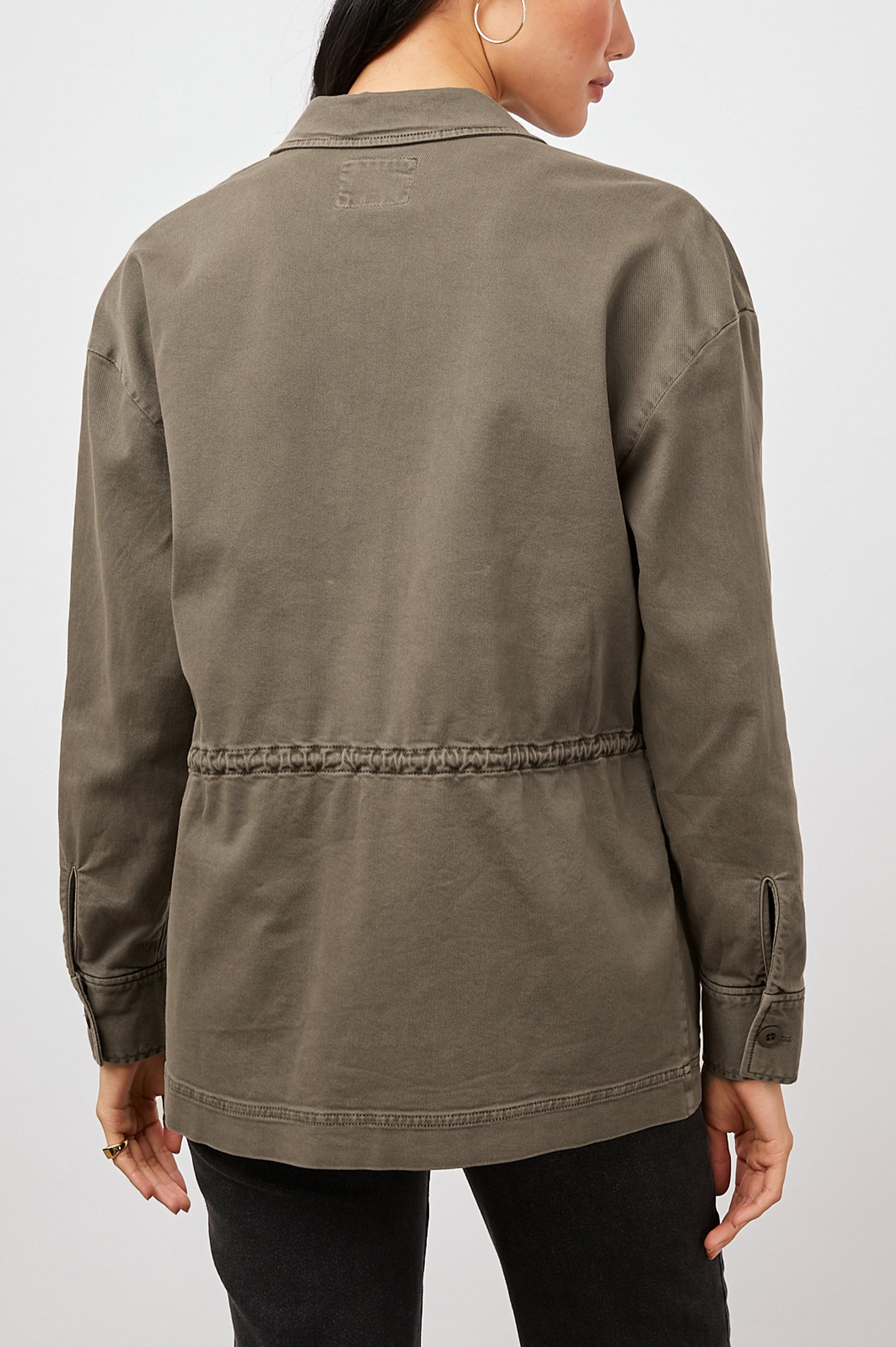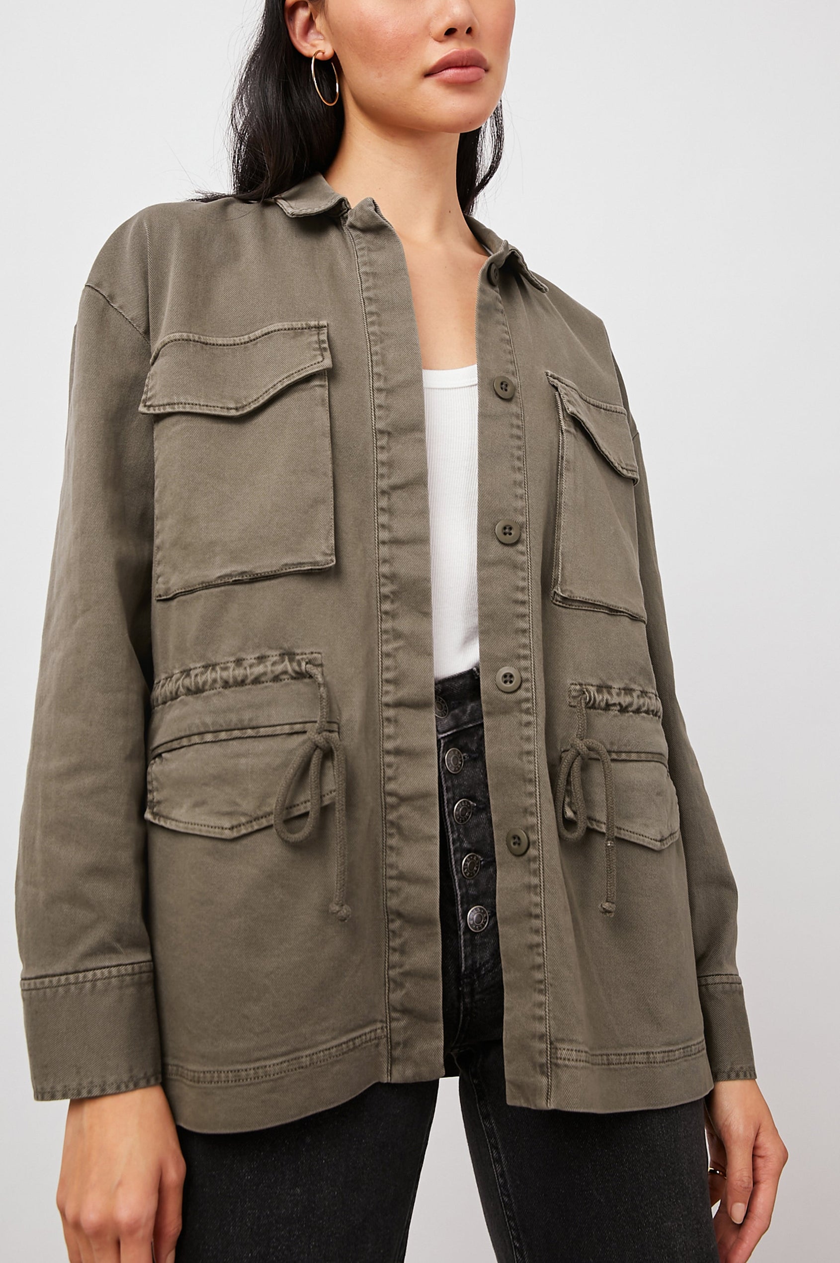 Cette veste d'inspiration militaire est la troisième pièce parfaite pour toutes vos tenues. Fabriquée dans un mélange léger de coton biologique, cette veste à manches longues est dotée d'un cordon de serrage réglable et de poches cargo à la poitrine et à la taille.