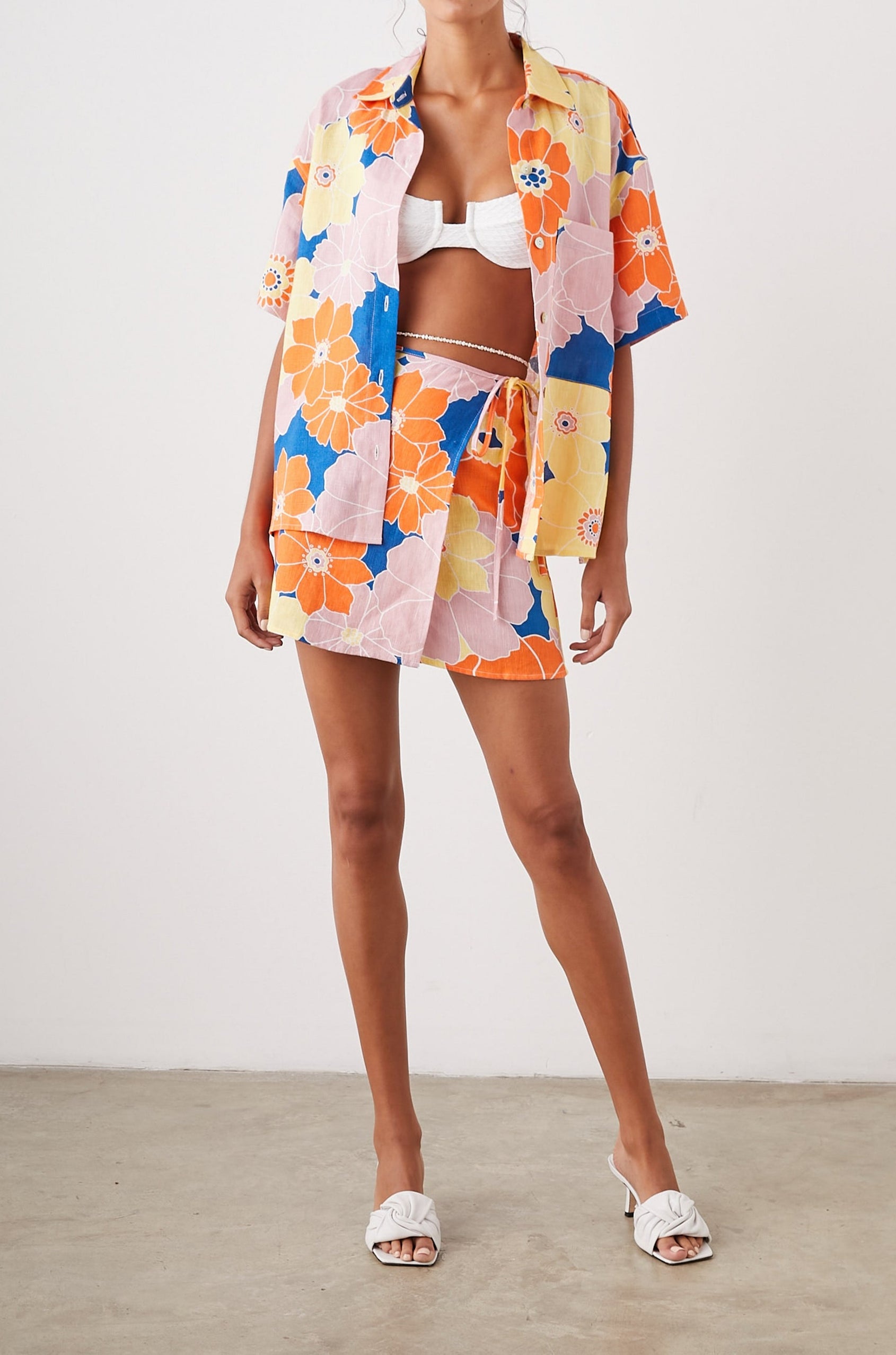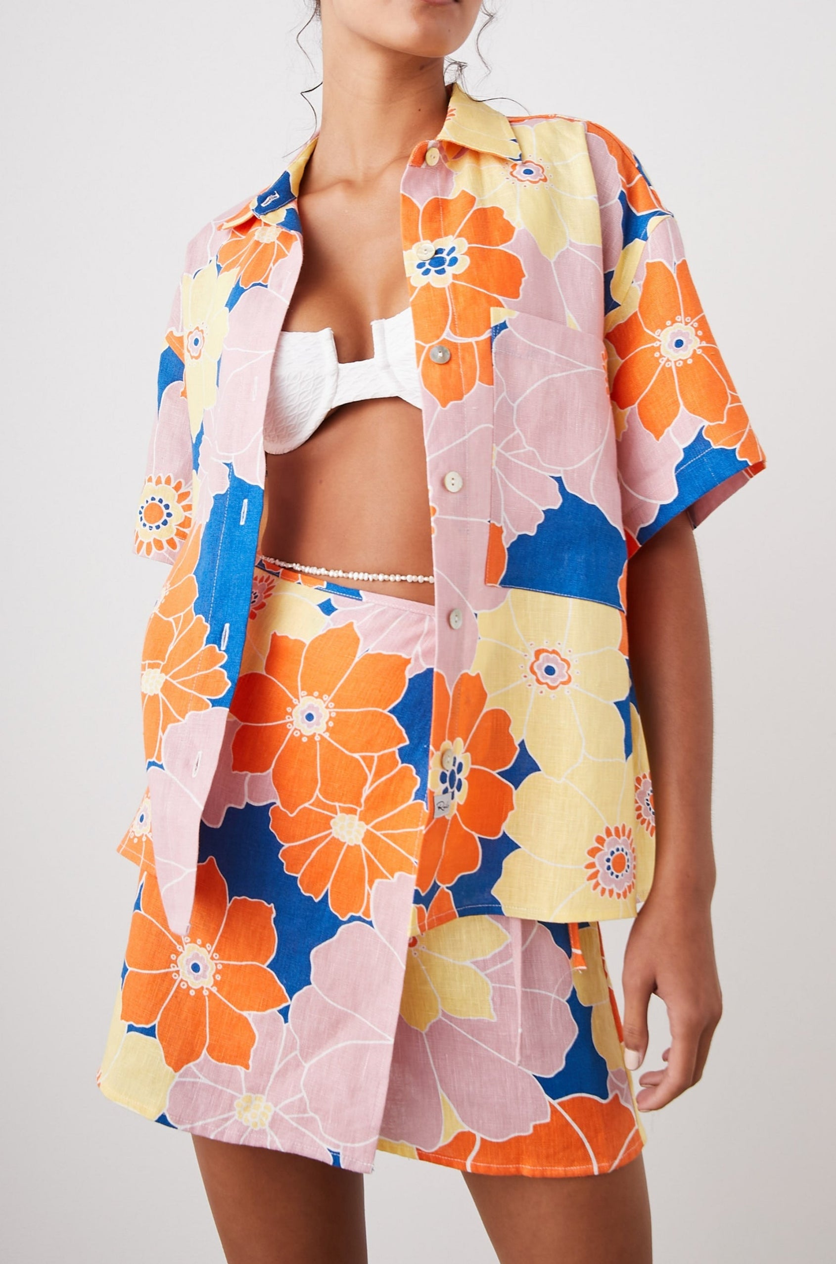 Oversize et extrêmement confortable, la chemise MacKinley vient enrichir votre rotation de hauts quotidiens faciles à porter au printemps et à l'été. Conçue en lin épais, cette chemise à manches courtes est dotée d'une poche de poitrine exagérée et se boutonne sur le devant. Des fleurs surdimensionnées dans des couleurs vintage lui assurent un look unique.